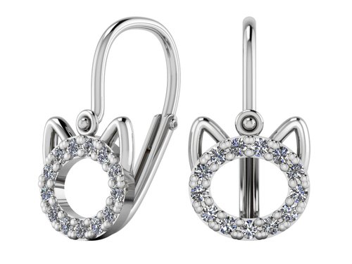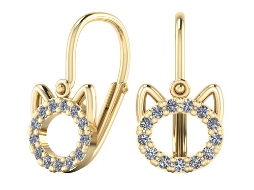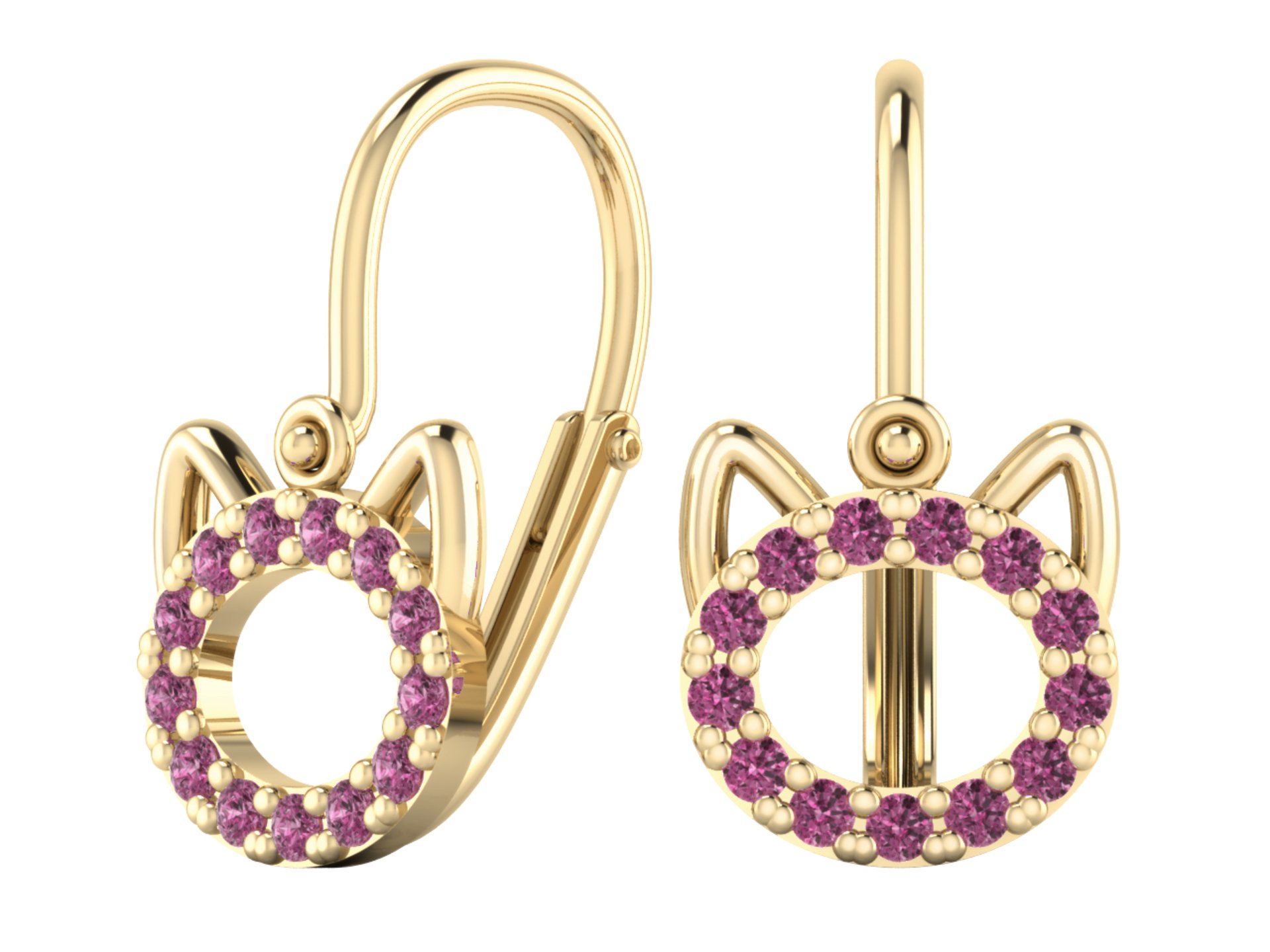Roztomilé dětské náušničky ve tvaru kočičky jsou osázeny kamínky po celém svém obvodu. Jakou barvu zlata a kamenů si vyberete?
