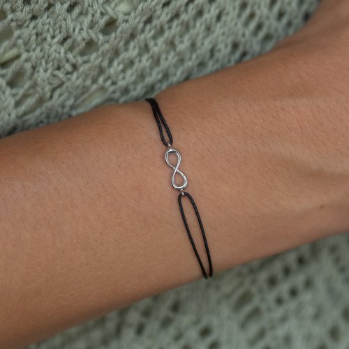 Nekonečno může být symbolem cyklické podstaty věcí, symbolem nekonečné lásky nebo přátelství. Proto bude tento náramek vhodným dárkem pro partnerku, maminku či kamarádku. Délka náramku je nastavitelná. Vybrat si můžete z černé nebo červené šňůrky. Barvu napište prosím do poznámky.