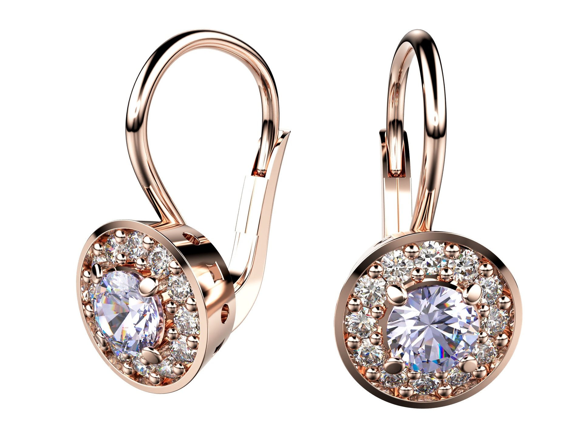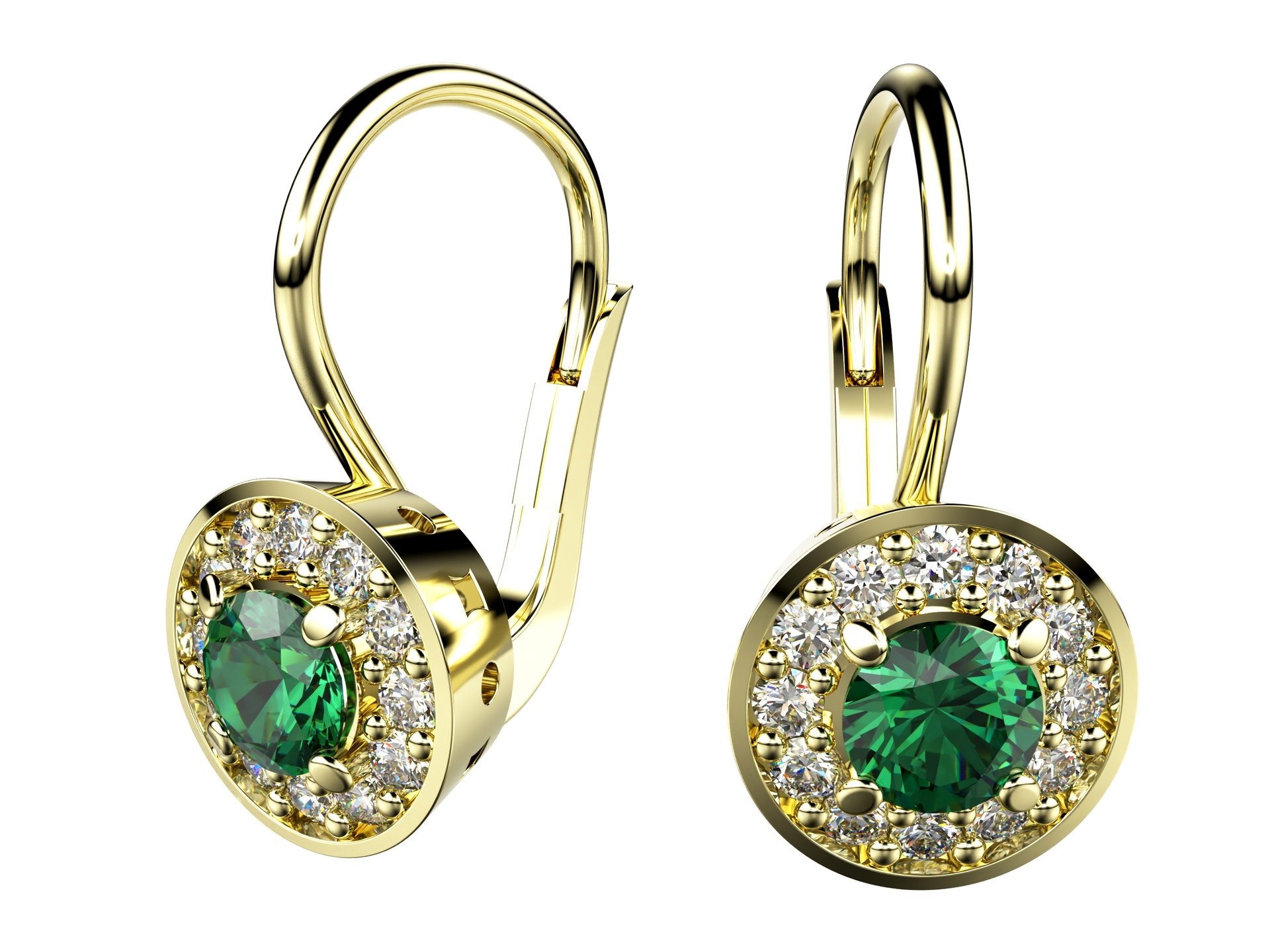 Nadčasové náušnice mohou být dokonalým dárkem pro Vaši milovanou. Hlavní barevný kámen obklopuje dvanáct menších briliantů. Kontrast barev těchto kamenů Vás okouzlí.
