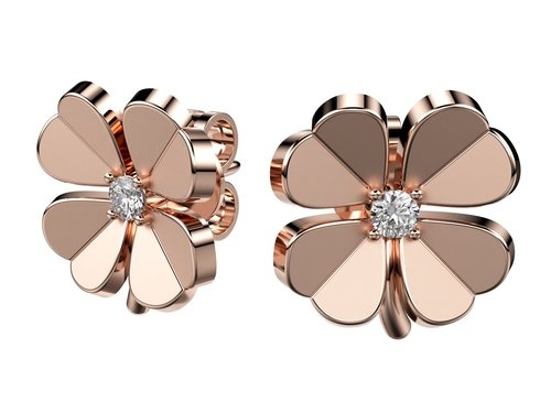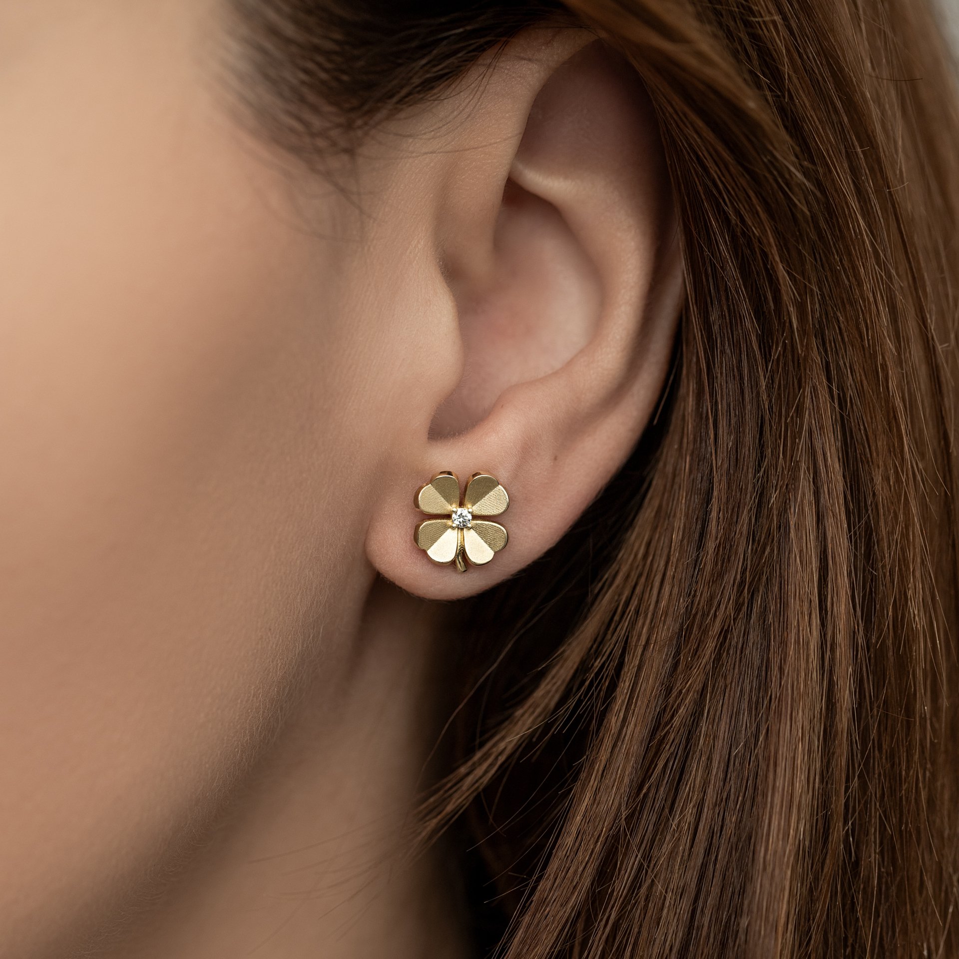 Originální zlaté náušnice vám budou nosit štěstí na každém kroku. Uprostřed se leskne nepřehlédnutelný briliant. Zkombinovat je můžete s náhrdelníkem nebo náramkem Lucky ve stejném stylu. Rozměr šperku - 11 x 11 mm.