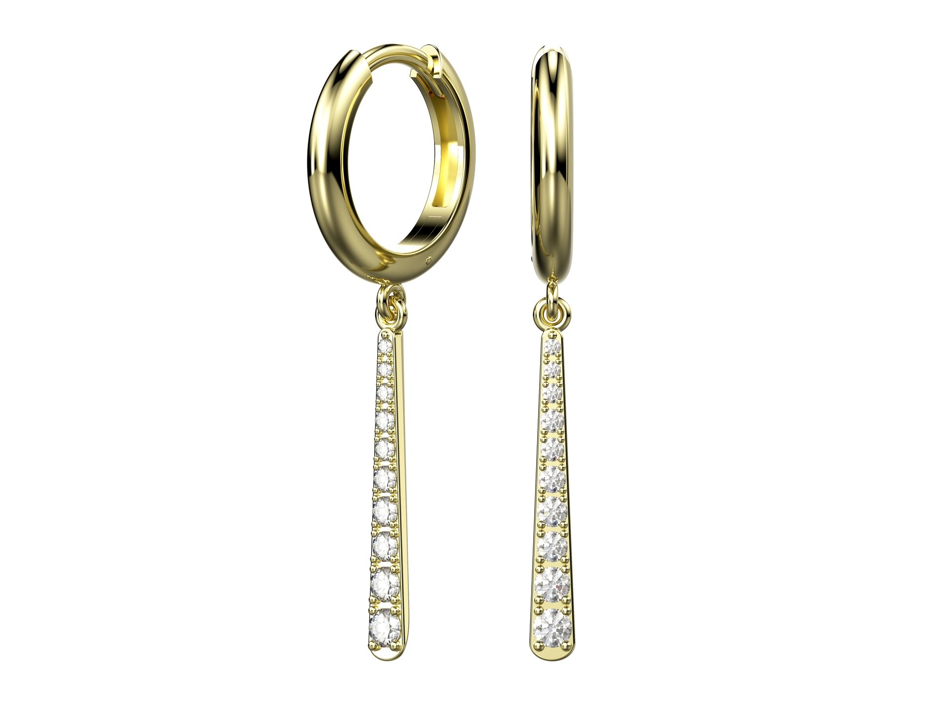 Elegantní náušnice ve tvaru kruhů s jemným ověskem zdobeným brilianty v postupném osazení okouzlí svým třpytem při každém pohybu. Nadčasový design z nich dělá ideální doplněk pro každodenní nošení i výjimečné příležitosti.