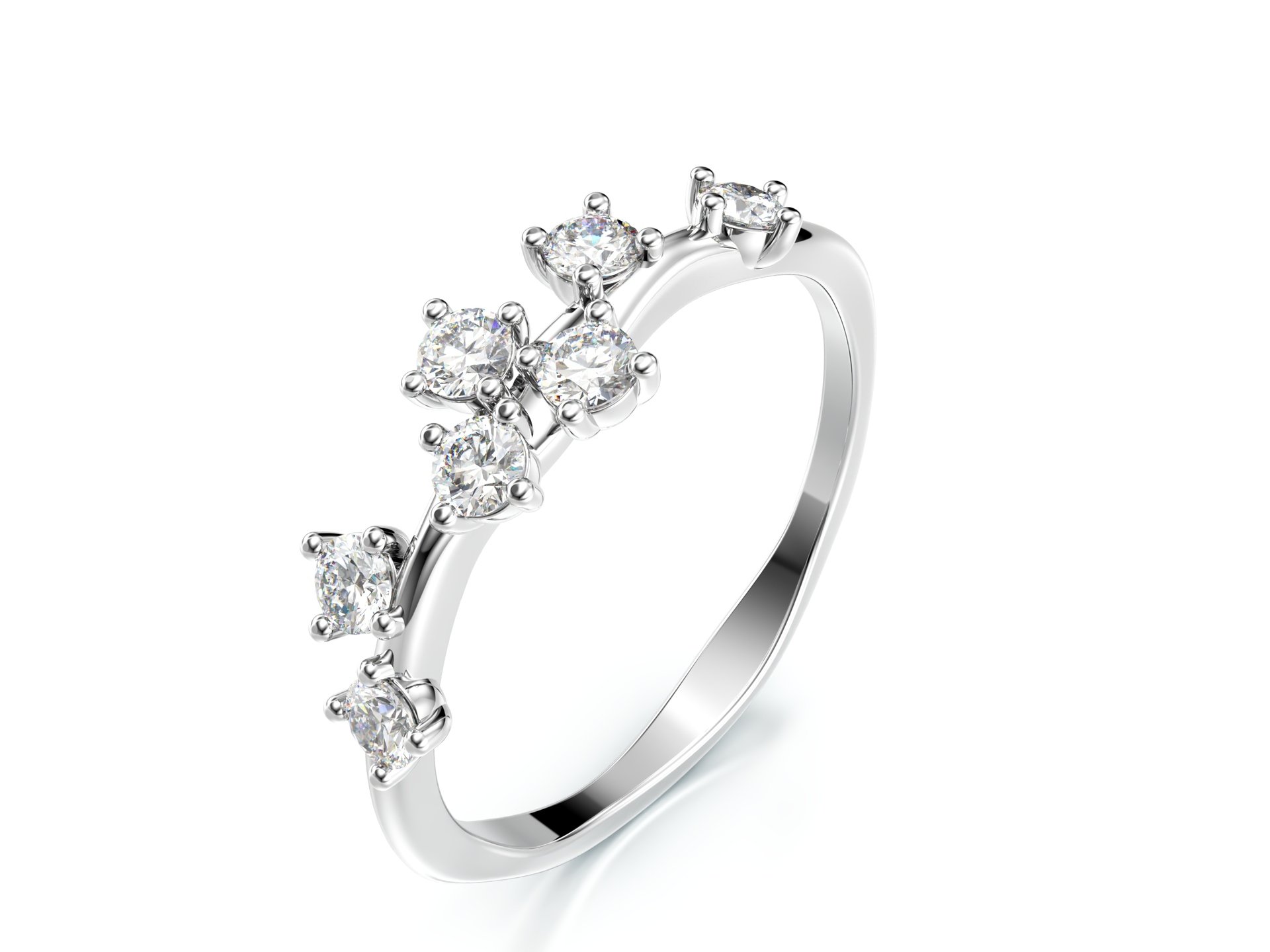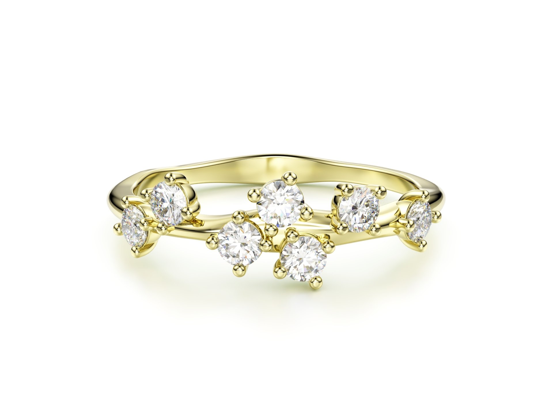 Originální prsten s nepravidelným zdobením briliantů, který zaujme svým jedinečným designem a nadčasovou elegancí. Zkombinovat jej můžete s náušnicemi Eternity ve stejném stylu.