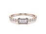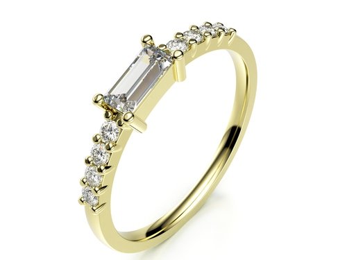 Větší diamant ve tvaru baguette jsme zkombinovali s drobnými třpytivými brilianty a vznikl z toho tento překrásný minimalistický šperk.