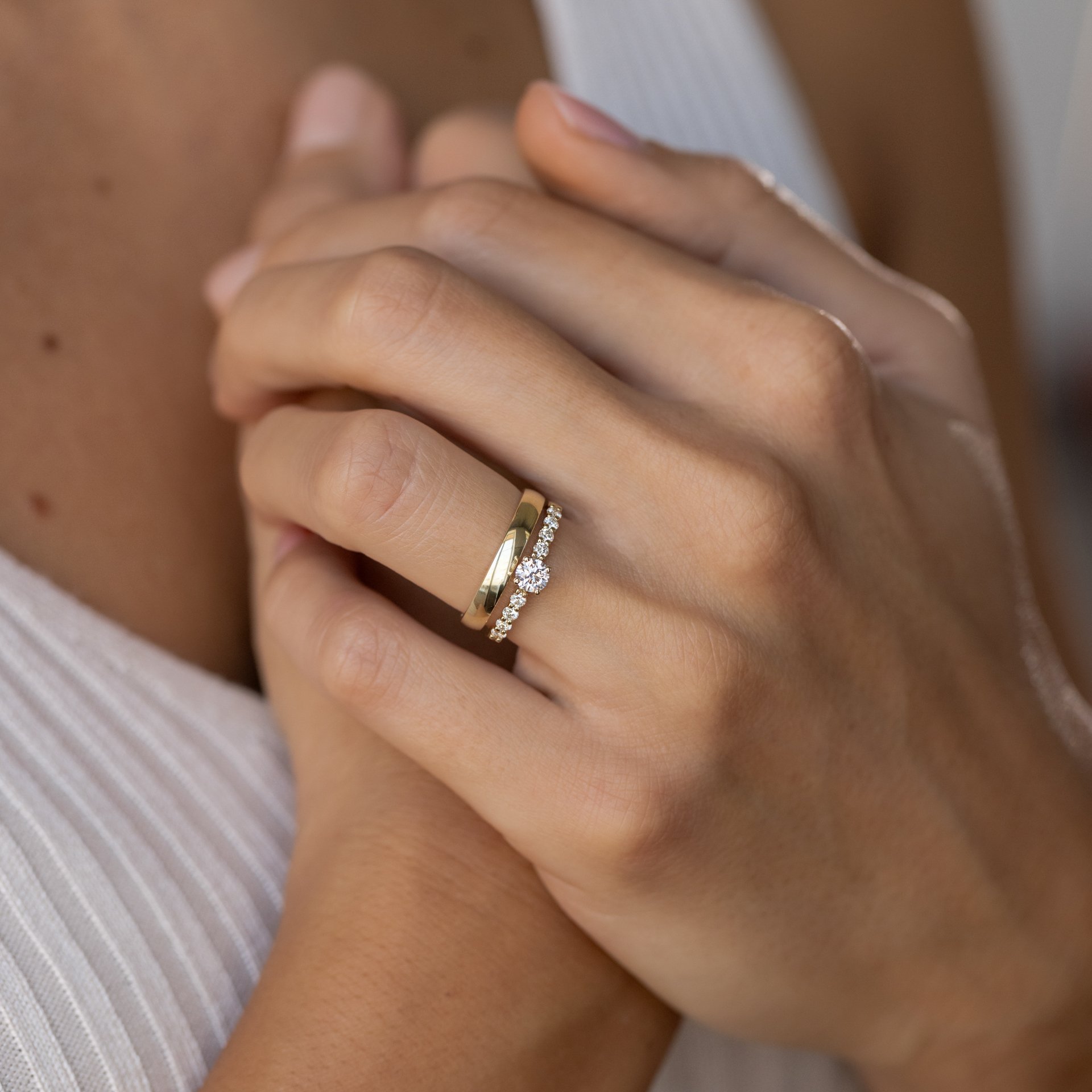 Abychom vám tyto modely prstenů co nejvíce zpřístupnili i při rostoucích cenách zlata, rozhodli jsme se je nabízet v odlehčeném provedení. Tloušťka profilu je proto 1,10 mm, namísto našich standardních 1,30 mm.