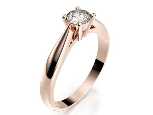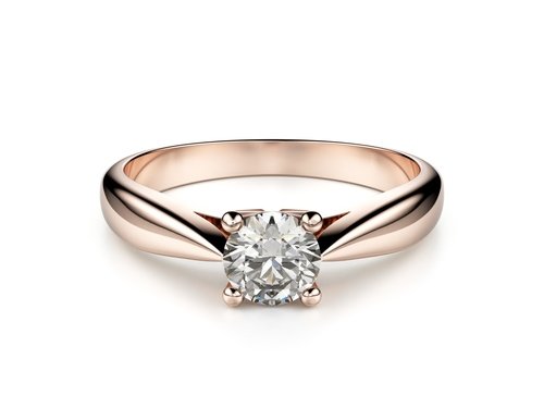 Klasický zásnubní prsten, jehož zaoblená obroučka se směrem ke kameni elegantně zužuje.