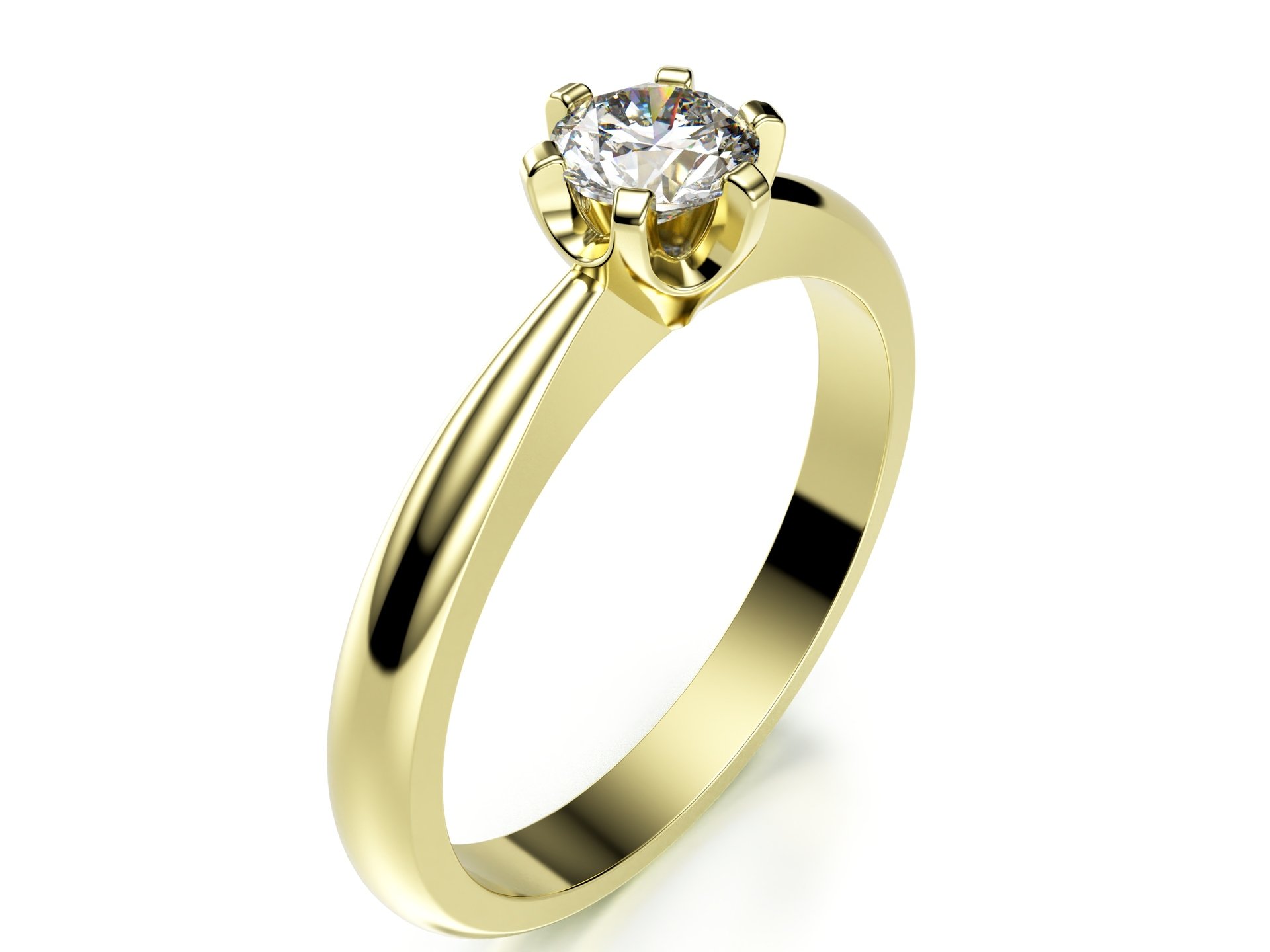 Diamant usazený do šesti krapen je dominantou tohoto elegantního zásnubního prstene. Klasika, která nikdy nevyjde z módy.